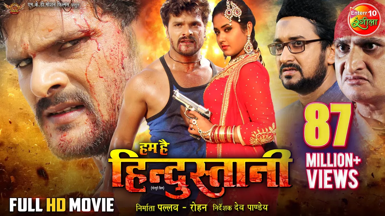 Hum Hai Hindustani - FULL HD Movie - Khesari Lal Yadav, Kajal Raghwani - Super Hit Bhojpuri Film Hum Hai Hindustani is a Bhojpuri Action Drama released on 04 August, 2017. The movie is directed by Dev Pandey and Produced by Pallav-Rohan. Khesari Lal Yadav & Kajal Raghwani are played as lead character in the movie where Khesari had played as 'Ram Hindustani' and Kajal had played Jaanashin, a sister of Muslim Political Leader. The basic theme of the movie is "Jb Ishwar or Allah ek hain to 2 kaise ho sakte hain Mandir aur Maszid". Subscribe Now:- https://bit.ly/2J5qtbI __________________________________ Film :- Hum Hai Hindustani हम है हिन्दुस्तानी Starring :- Khesari Lal Yadav, Kajal Raghwani, Sambhavana Seth, Avdesh Mishra Producer :- Pallav-Rohan Movie Director :- Dev Pandey Music Director :- Avinash Jha "Ghunghroo" Lyrics Writer :- Azad Singh, Pawan pandey, Pyare lal kavi, Singer :- Khesari lal Yadav, Priyanka Singh, Kalpana, Indu Sonali, Honey bee, Aalok Kumar Music Label :- Enterr10 Music Bhojpuri __________________________________ Movie Songs :- 1 KAMAL KE PHOLWA :- 06:45 2 FASARI LAGA LEB :- 23:22 3 KATIHA JANI PHONE :- 38:28 4 AASMAAN KE CHANDA :- 50:47 5 HOLI - E RANI HUM INTJAR KAR TANI :- 01:18:10 6 TELWA MAL DE :- 01:18:51 7 CHURI NAINO SE CHALA KE :- 01:41:31 8 RAHMAN KE BINA :- 01:55:45 9 QUAWALI - SAJDA KARE JAMANA :- 02:06:47 10 LEKE DHARAM KA NARA __________________________________ Enjoy & stay connected with us! 👉Share This Video: https://youtu.be/YspuIymPZ40 👉Subscribe to Enterr10 Rangeela: https://www.youtube.com/channel/UCR_-PUF53tA5-Iyp4Ncfjcg 👉Like us on Facebook: https://www.facebook.com/enterr10rangeela 👉Follow us on Twitter: https://twitter.com/Enterr10_Music 👉Follow us on Instagram: https://www.instagram.com/enterr10rangeela/hl=en __________________________________ #khesarilalyadav #kajalraghwani #khesari #kajal #bhojpurifullmovie #khesarilal #kajalraghwani