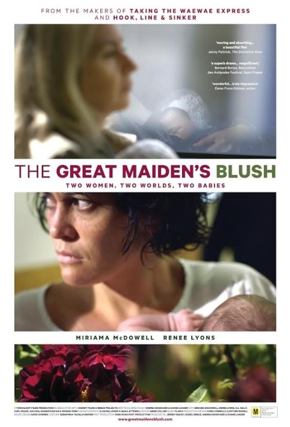 The low-key realism of the film-making also belies the melodramatic tradition. The present day scenes in the hospital maternity and neo-natal ward are shot in crisp ultra-realist high def, while the theme of memory and past is intoned, at least for Aila's part, in an impressionistic sunlit palette of Chopin and lush roses, along with speckled super-8 home movies. Bunni's past is largely seen in interior and nighttime shots, lacking color and expansiveness. Her character remains something of a puzzle, but an intriguing one.